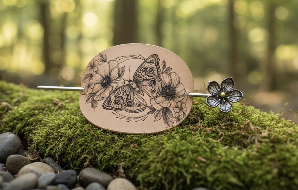 Představujeme vám unikátní vlasový doplněk, který v sobě snoubí sílu přírodní kůže a křehkou krásu kresby. Tato spona není jen kusem doplňku, je to malé umělecké dílo vytvořené s trpělivostí a láskou k detailu. Každý kus je originál, do kterého byla vložena duše ruční práce.