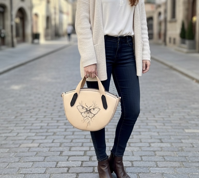 Představujeme vám kabelku, která kombinuje uměleckou jedinečnost, elegantní design a dokonalou praktičnost. Je to volba pro ženu, která vyžaduje luxusní materiály, oceňuje ruční práci a miluje doplňky s příběhem.