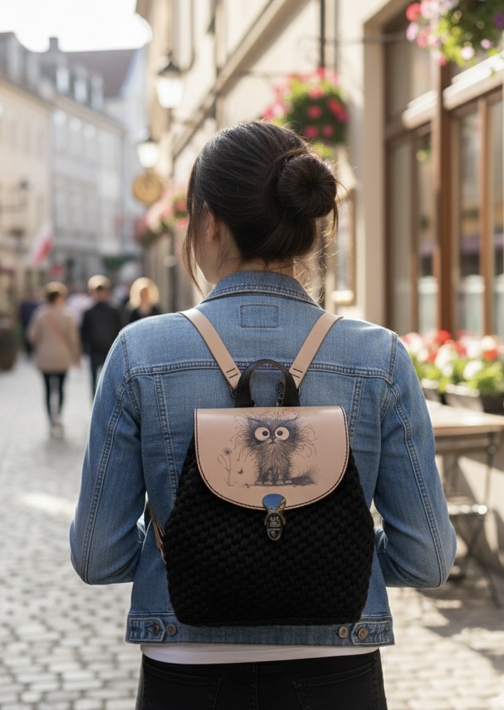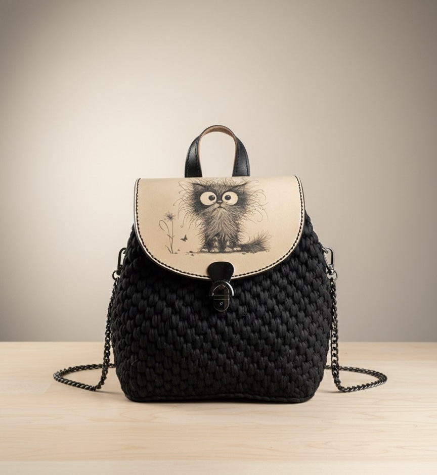 • Materiál: Kombinace ručně háčkovaného těla a prémiové třísločiněné hovězí kůže.